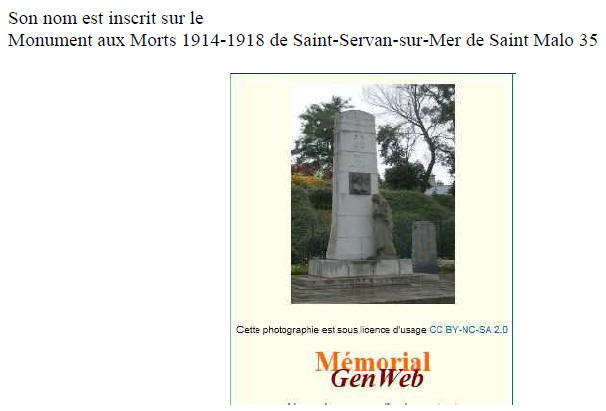 SAINT-SERVAN-sur-MER (Ille-et-Vilaine) - Décédé le 6 avril 1918 en