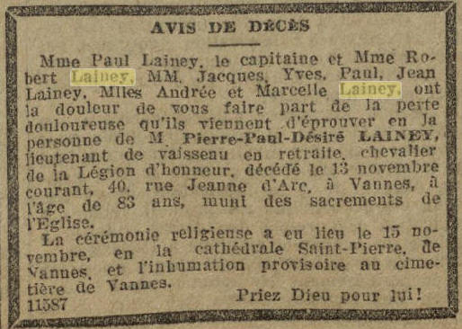 Né le 14 décembre 1834 à GRANVILLE (Manche) - Décédé le 13 novembre