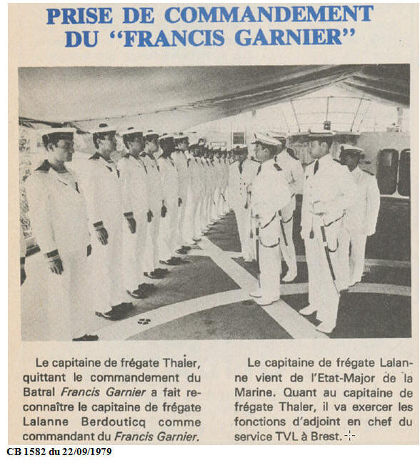 Commande le bâtiment de transport léger Francis Garnier le 30 juin