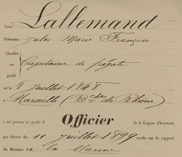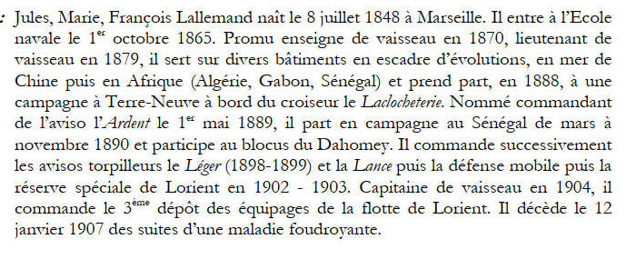 commandant l’Ardent (1889 – 1890) et le Léger (1898 – 1899).