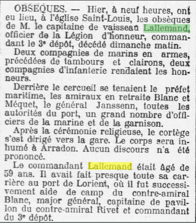 arrondissement maritime à LORIENT; et ce jusqu'en mars 1903.