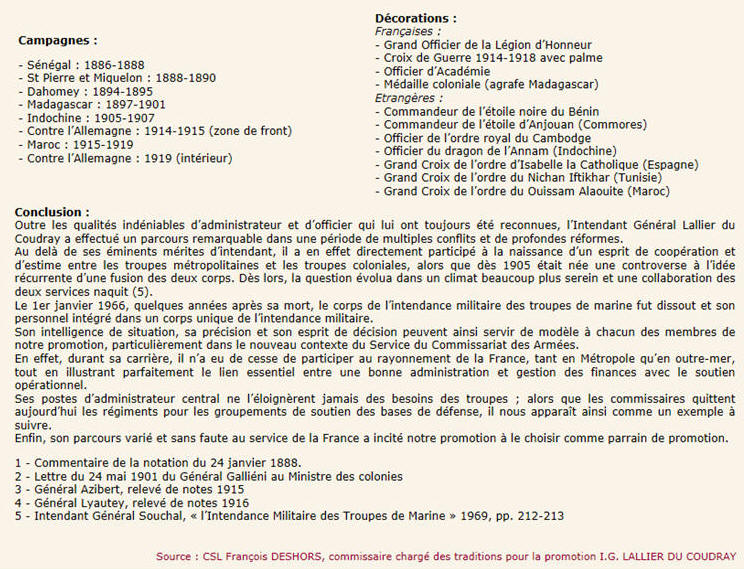 de 1ère classe des troupes coloniales, chef du service colonial à