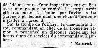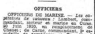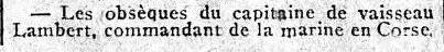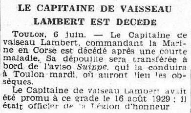 Marine en CORSE, cet Officier décède à l'Hôtel de la Marine.