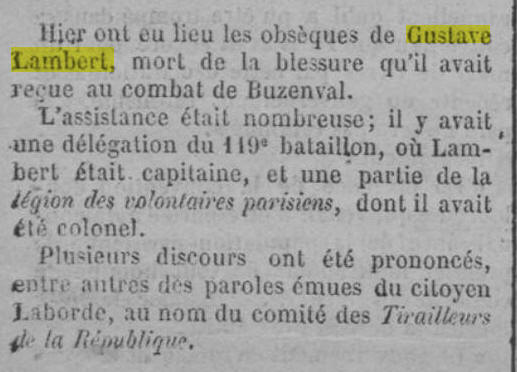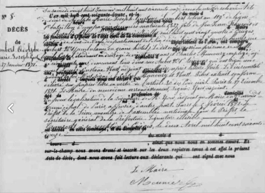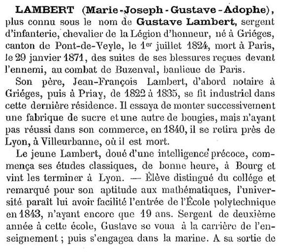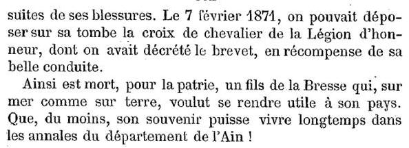 à GRIEGES (Ain) - Décédé le 27 janvier 1871 à BUZENVAL (Seine et