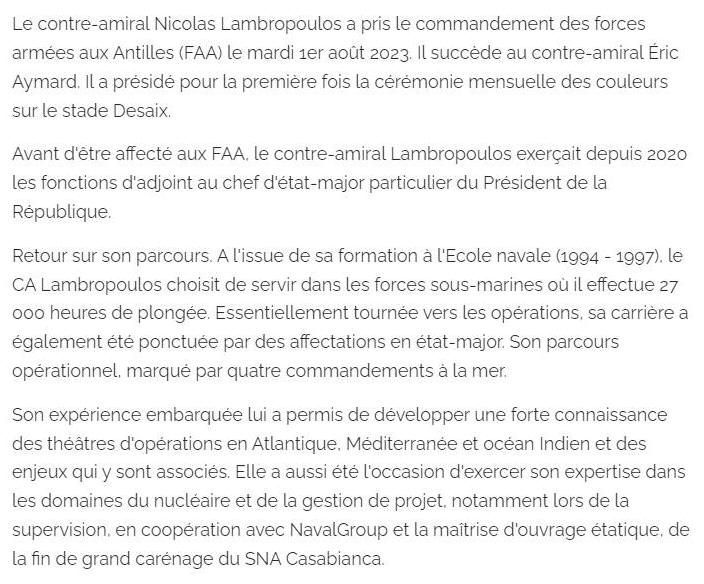 des forces armées aux Antilles (COMSUP FAA), commandant de la zone