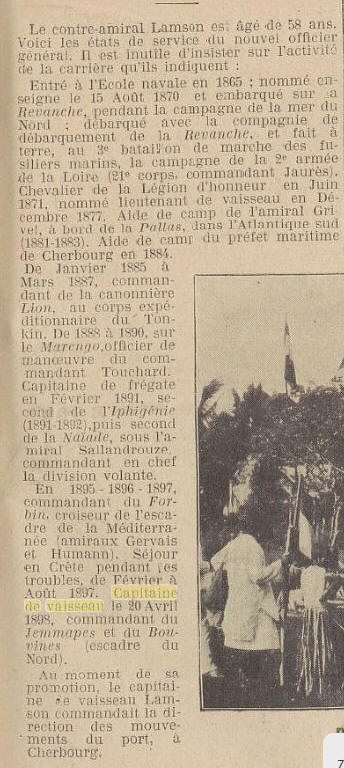 Commandant le cuirassé garde-côtes "BOUVINES", porte-pavillon du