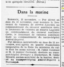 de camp à l'État-Major du Préfet maritime du 5ème arrondissement à