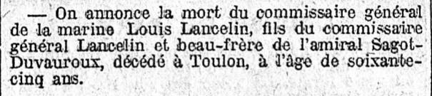 TOULON (Var) - Décédé le 22 décembre 1921 à TOULON (Var).