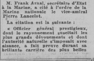 de l'équipage, le Vice-amiral était venu représenter le Chef