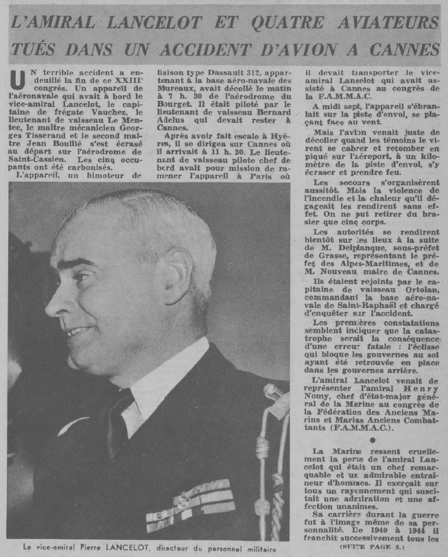 7 octobre 1957, il trouva la mort à Cannes dans un