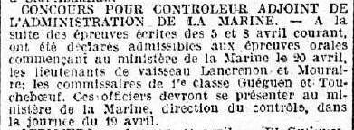 l'administration de la Marine, en qualité de Contrôleur adjoint de