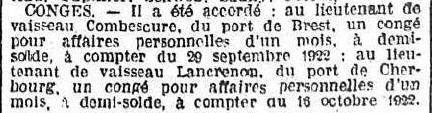 réserve le 30 septembre 1928, étant dans le Corps du Contrôle de