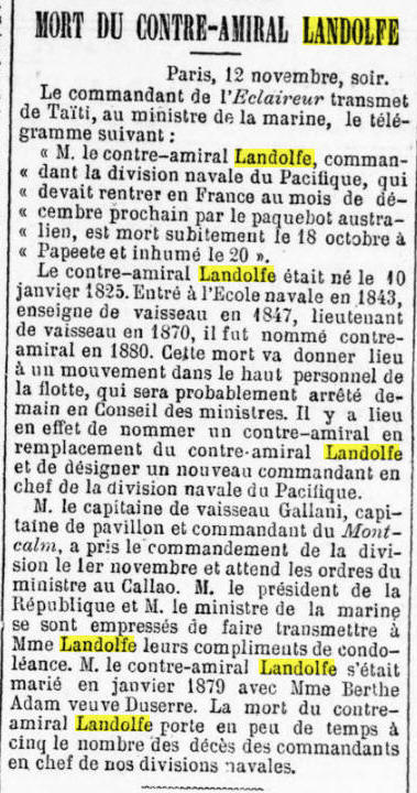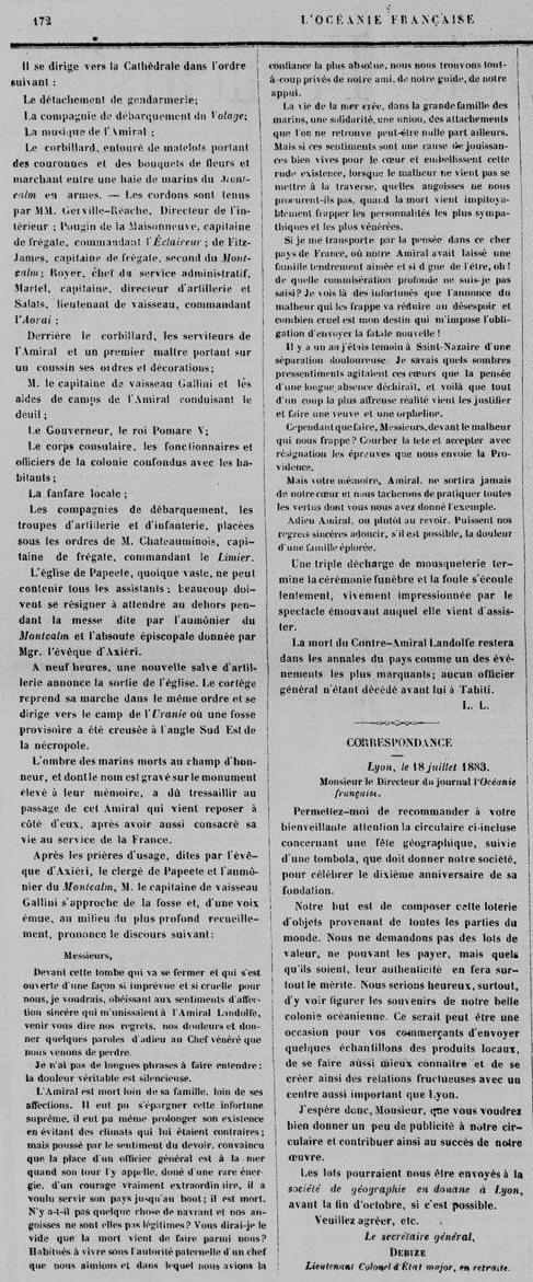 (Saône-et-Loire) - Décédé le 18 octobre 1883 à PAPEETE (Polynésie