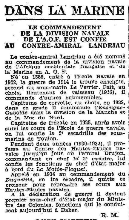 (1930-1932 et 1936-1939) et commande le croiseur Duquesne.