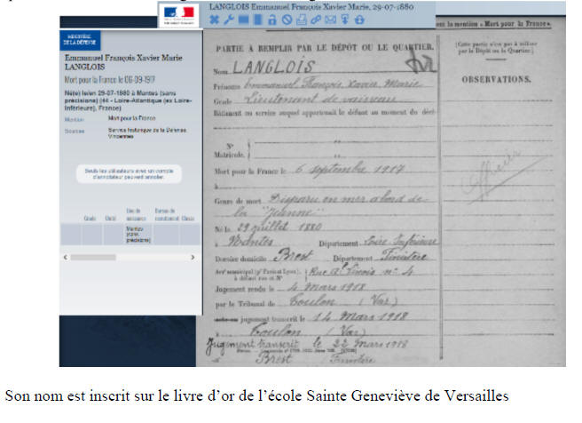 (Loire-Atlantique) - Décédé le 6 septembre 1917 en mer, au large de