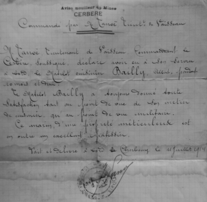1912, idem, sur le cuirassé "MARCEAU" (Cdts René LE NEPVOU DE