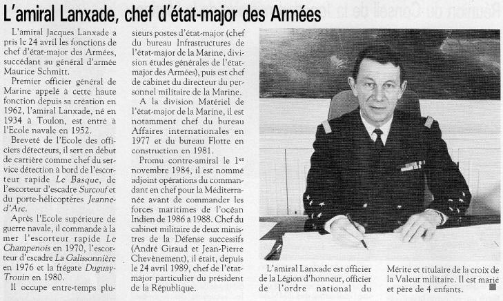 de 1989 à 1991 et ancien chef d'État-major des armées françaises, de