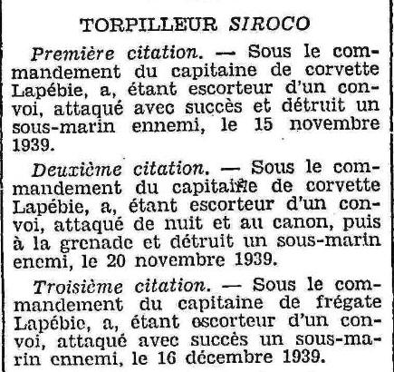 guerre (trois fois cité à l'ordre de l'armée de Mer)."