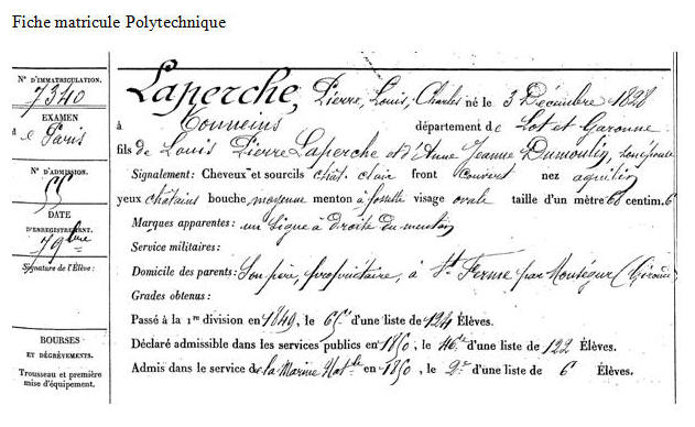Élève de l'École polytechnique en 1848, opte pour la Marine.