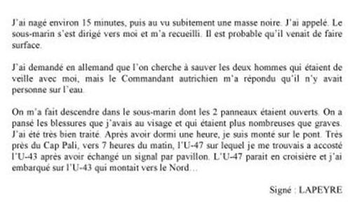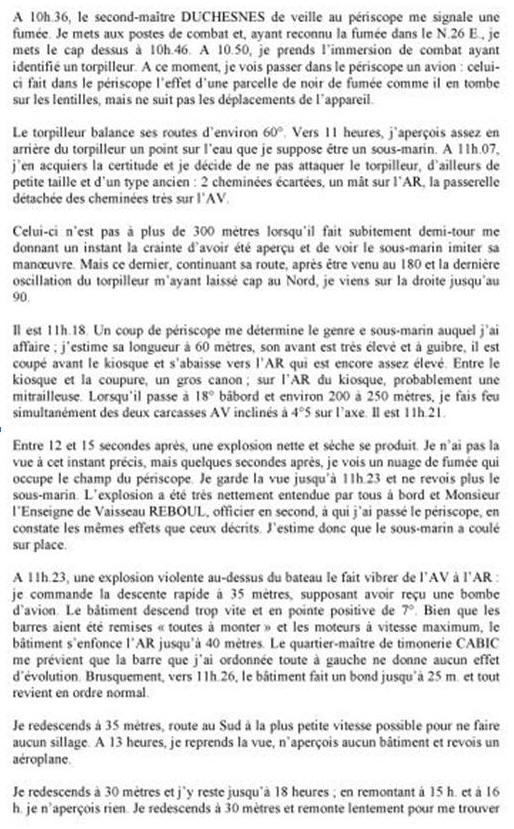 Rapport de l’Enseigne de Vaisseau LAPEYRE, officier en second du