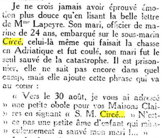 alors Second du sous-marin "CIRCÉ" (Cdt Henri VIAUD), étant de quart
