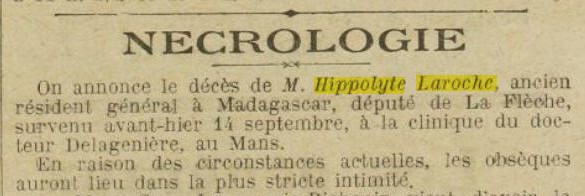Décédé le 14 septembre 1914 au MANS (Sarthe)