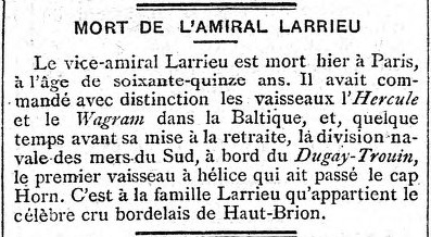 BREST (Finistère) - Décédé le 8 juin 1884 à PARIS (Seine)