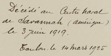 manuscrite datée du 6 juin 1919 : "S'est suicidé par balle de
