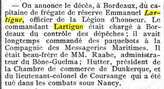 - Décédé le 2 juin 1915 à BORDEAUX (Gironde)