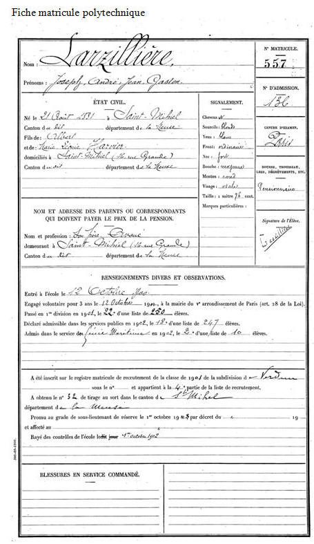 Élève de l'École polytechnique le 1er novembre 1900, opte pour le