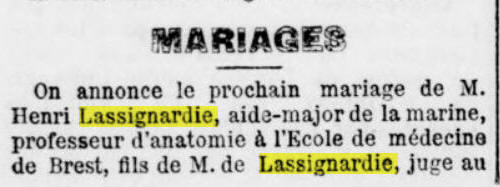 Médecin auxiliaire de 2ème classe le 6 janvier 1898.