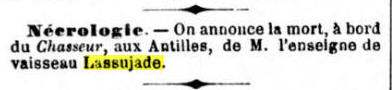 Décédé en rade de Port au Prince à bord de l'aviso "CHASSEUR"
