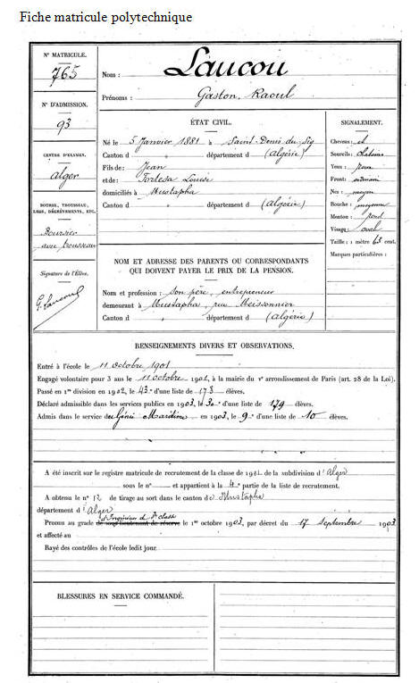 Élève de l'École polytechnique le 1er novembre 1901, opte pour le
