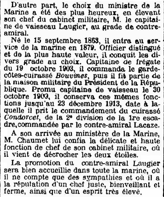jusqu'en janvier 1916, Commandant le cuirassé "CONDORCET", il