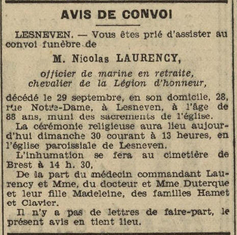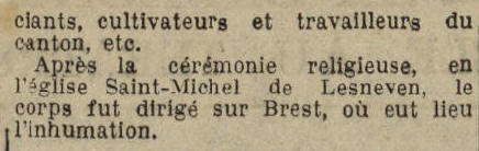 à GRAY (Haute-Saône) - Décédé le 29 septembre 1934 à LESNEVEN