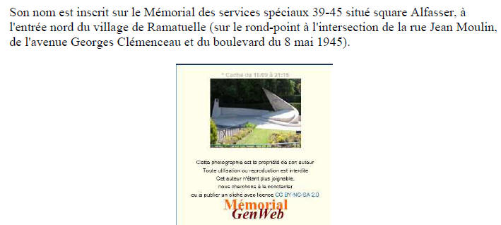 Déclaré "Mort pour la France" et cité à l'ordre de l'Armée, le