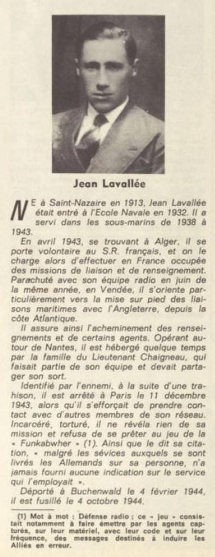 * Lieu de mémoire: le nom de Jean Lavallée a été donné à un