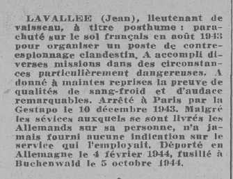 lieutenant de vaisseau Jean Lavallée sera fait chevalier de la