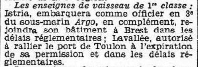 affecté au sous-marin Agosta jusqu'en avril 1940.