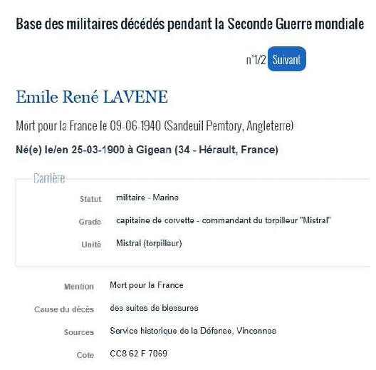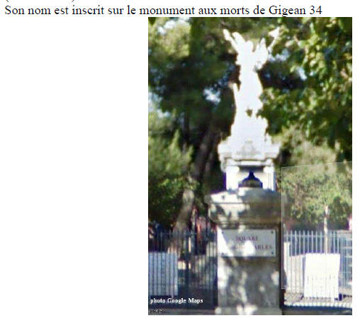 Né le 25 mars 1900 à GIGEAN (Hérault) -