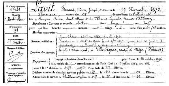 division en 1897, reçu à Polytechnique 194èmè sur 220 élèves