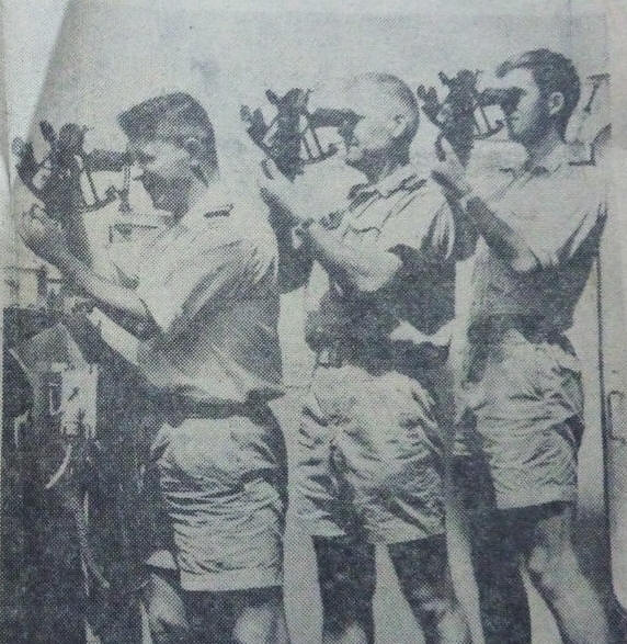 Officiers observant la méridienne ( LV Lazier, OE2 Tromeur et EV2