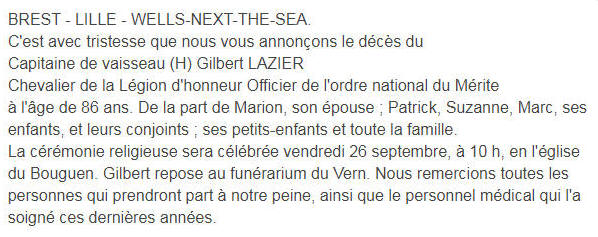 Décédé le 24 septembre 2014 à BREST (Finistère)