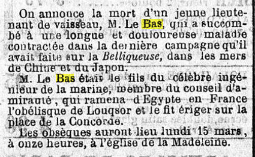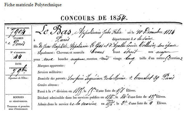 Apollinaire Le Base, X 1816, ingénieur de la Marine