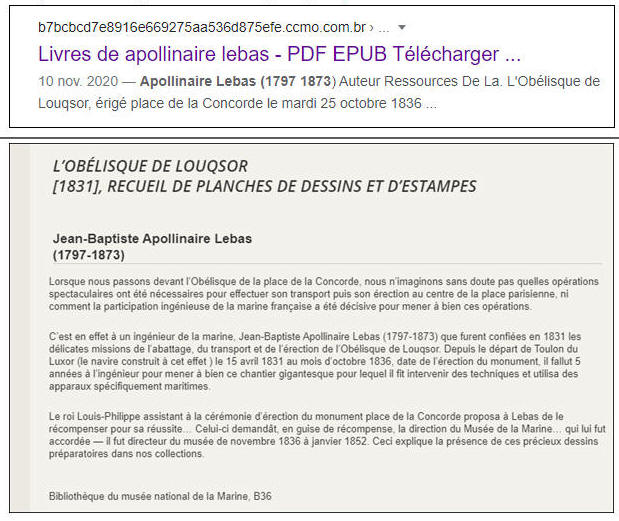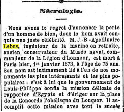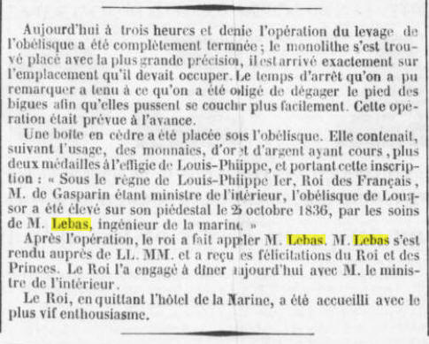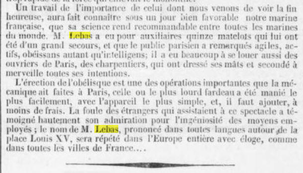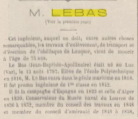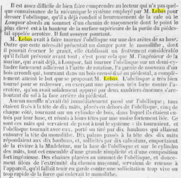 Jean-Baptiste Apollinaire Lebas, L'Obélisque de Louxor : Histoire de