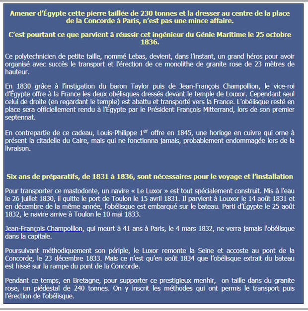 de la Concorde. Le rêve de Champollion est partiellement réalisé: