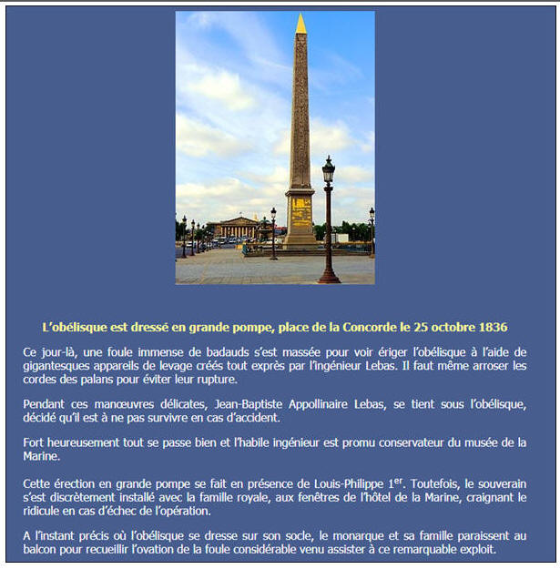 décembre 1833 qu'il arrive enfin à Paris. Et l'obélisque n'est
