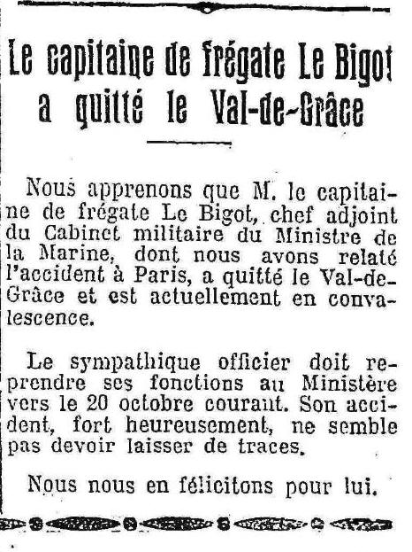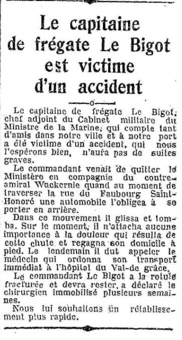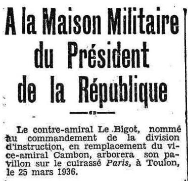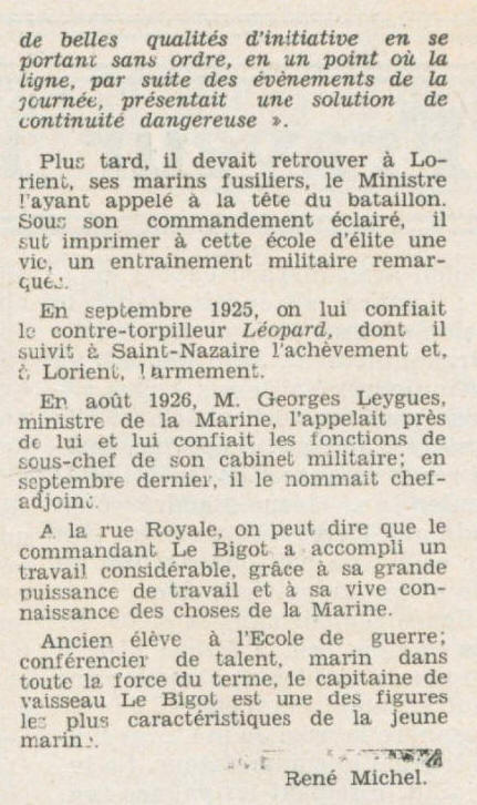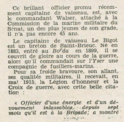 mars 1919, Aide de camp de du Préfet maritime du 2ème arrondissement