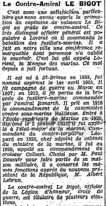 Extrait Le Nouvelliste du Morbihan / 1er octobre 1932