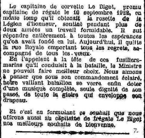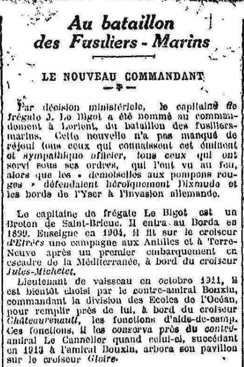 Commande l'École des fusiliers marins à LORIENT, du 1er octobre 1923